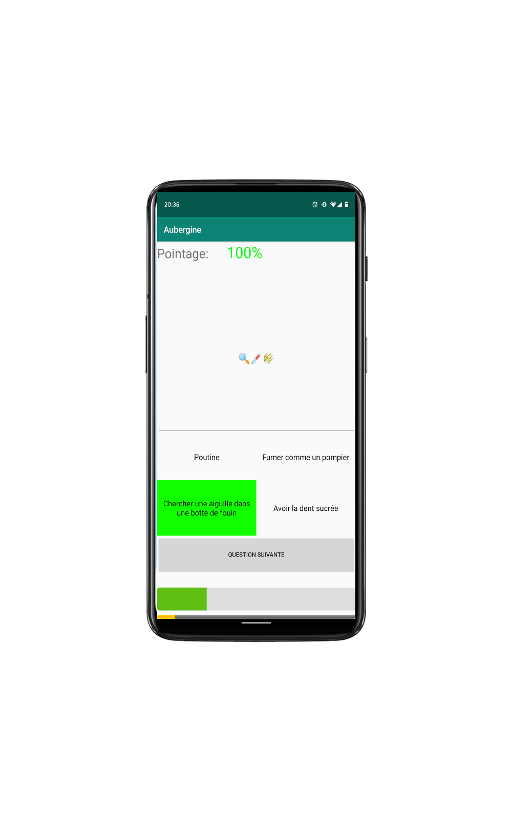 Aubergine est une application ludique et humoristique. Le but est simple: Devinez quels mots sont associés aux émojis présentés! Chaque combinaison est unique et vous assure un challenge grimpant au fur et à mesure que vous avancez dans les niveaux. Etes-vous prêt à relever le défi?